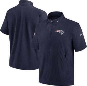 Men's Nike Navy New England Patriots Sideline Coach Short Sleeve Hoodie Quarter-Zip Jacket