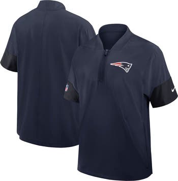 Look like one of the New England Patriots coaching staff in this Sideline Short Sleeve Quarter-Zip Coach Jacket by Nike. Crafted with water-repellent taffeta fabric, it offers lightweight, breathable coverage from the elements. Zippered side seams allow for easy use, making this New England Patriots jacket perfect for layering in changing weather conditions.