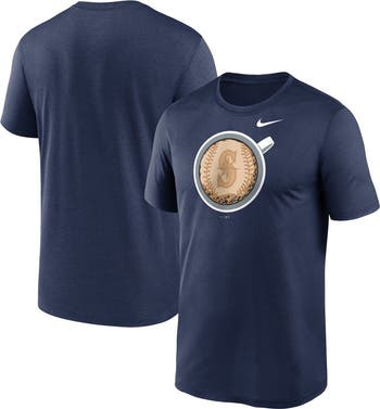 The Men's Nike Navy Seattle Mariners Coffee Hometown Legend Performance T-shirt is the perfect way to show your support for the Seattle Mariners. Made from breathable polyester, this T-shirt features Dri-FIT technology to keep you cool and comfortable all game long. The crew neck and screen print graphics add a touch of style, while the Seattle Mariners logo proudly displays your team spirit. Whether you're cheering from the stands or watching from home, this T-shirt is a must-have for any Mariners fan.