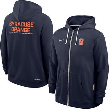 Feel like part of Syracuse Orange athletics in this 2025 Sideline Standard Issue Dri-FIT Full-Zip Hoodie by Nike. Its roomy fit combines heavyweight fleece fabric with sweat-wicking technology to keep you dry and comfy. Multiple pockets provide convenient storage of essential items, making this Syracuse Orange hoodie an ideal choice for representing your team on the go.