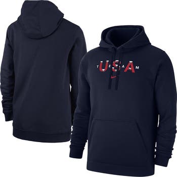 Cheer on Team USA in a winter-inspired design with this Snow Club Hoodie by Nike. Snow-capped script printed across the front represents your support of athletes competing for their country. Midweight fleece fabric keeps you warm in this Team USA hoodie, while an adjustable hood and pouch pocket add extra utility for chilly days.