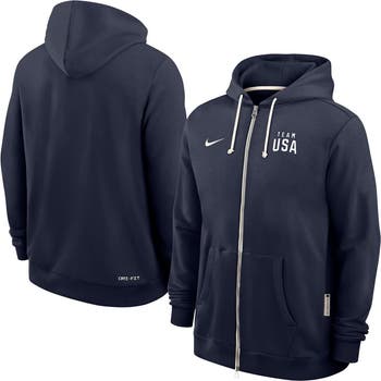 Represent Team USA in comfy style with this Standard Issue Dri-FIT Full-Zip Hoodie by Nike. Heavyweight fleece fabric provides a warm and cozy feel, while sweat-wicking Dri-FIT technology keeps you dry. The relaxed fit and pockets make this Team USA hoodie ideal for everyday wear, whether you're training or on the go.