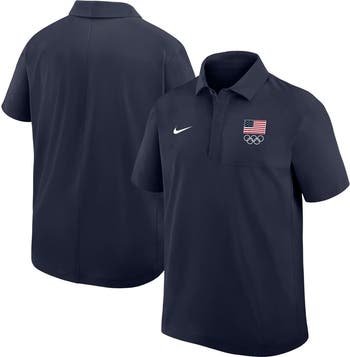 Show your national pride in classic style with this Team USA Woven Polo from Nike. The lightweight, water-repellent taffeta fabric ensures a comfortable and dry experience, while the two-button placket adds a touch of classic style. A heat-sealed team logo at the left chest makes this polo perfect for showing your support for Team USA on and off the course.