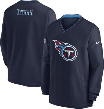 Elevate your Tennessee Titans gear with this 2023/24 Sideline Repel V-Neck Long Sleeve Pullover Windshirt from Nike. It features a water-repellent woven shell and soft brushed interior, providing both protection from the elements and cozy comfort. With a classic rib-knit V-neck and embroidered twill patches, this windshirt is a stylish and functional way to show your Tennessee Titans pride in inclement weather.
