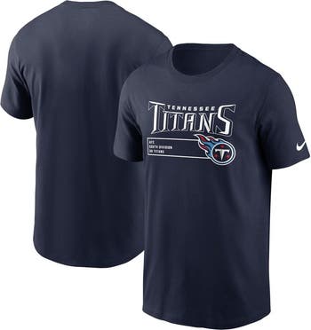 Rep your squad in an all-out fashion with this Division Essential T-shirt by Nike. Distinct Tennessee Titans graphics spotlight your team spirit in an authentic design. A relaxed construction and soft fabric offer comfort with each wear.