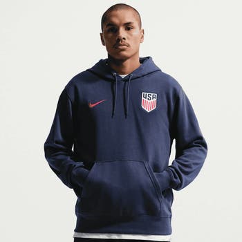 Nike turned an everyday classic into a comfortable staple for devoted USMNT supporters with this Club Hoodie. Featuring an embroidered team crest, the French terry fabric has a smooth, midweight feel with unbrushed loops on the interior and dropped shoulders for a breathable, relaxing piece of outerwear you can use year-round. Rib-knit trim keeps this USMNT hoodie in place, while the drawstring lets you adjust coverage during colder temps.