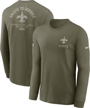 Join the New Orleans Saints in supporting those who bravely serve our country with this 2025 Salute to Service Sideline Long Sleeve T-Shirt by Nike. It replicates the military-inspired design and American flag patch the team wears. Lightweight jersey fabric keeps you cool and comfortable as you honor our nation's heroes in this New Orleans Saints tee. The NFL does not profit from the sale of Salute to Service products. Charitable contributions are awarded by the NFL Foundation to the NFL's Salute to Service nonprofit military partners.