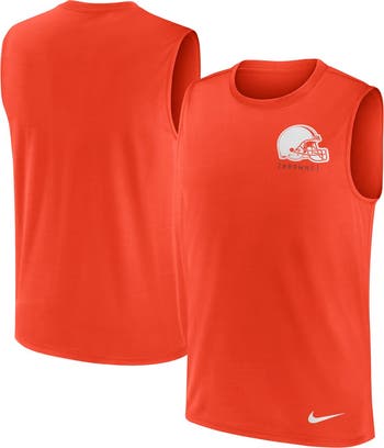 The Men's Nike Orange Cleveland Browns Muscle Tank Top is the perfect way to show your unwavering support for the Cleveland Browns. Made from durable polyester, this tank top features screen-printed graphics that proudly display the Browns logo and team colors. The crew neck and droptail hem with side splits provide a comfortable and stylish fit, while the custom bullets highlight the tank top's key features. Whether you're cheering on the Browns at the stadium or just showing your team spirit, this tank top is a must-have for any Browns fan.
