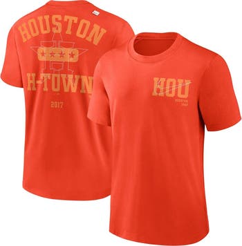 Celebrate your unwavering support for the Houston Astros with the Men's Nike Orange Houston Astros Statement Game Over T-shirt. This vibrant tee proudly displays screen-printed graphics that showcase your allegiance to the Astros. Made from a comfortable cotton and polyester blend, it's perfect for cheering on your team at the stadium or showing your Astros pride wherever you go.