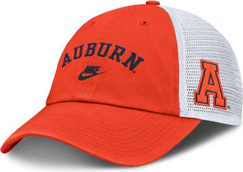Add some pop to your Auburn Tigers game day look with this Club Legacy Adjustable Trucker Hat from Nike. It combines timeless style with comfortable wear, featuring a softened construction for a worn-in look and feel right out of the box. Organic cotton twill makes up the front panels, while polyester mesh mid and rear panels enhance breathability to keep you cool while catching the game on warm afternoons. The embroidered team wordmark on the front and logo on the left side boldly display which team you're rooting for.