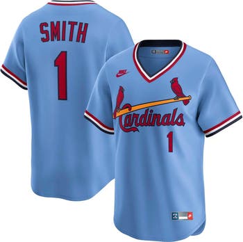Show off your St. Louis Cardinals pride with this sharp Ozzie Smith Throwback Cooperstown Collection Limited Jersey from Nike. This jersey's Vapor Premier chassis is made with breathable, high-performance fabric that improves mobility and moisture management, making it perfect for wearing at the ballpark or on the go. The heat-applied sublimated twill front logo and faux stitch player name and numbers are inspired by the on-field jersey, giving you an authentic look.