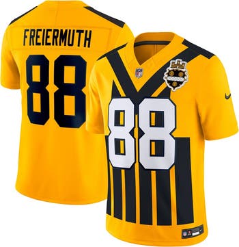 Walking into the stadium, you feel a rush of energy pass over you. You adjust your Pittsburgh Steelers Alternate Nike Limited jersey and know you're ready to get swept up in the electricity of the game. Made for authenticity-seeking fans, this state-of-the-art Vapor F.U.S.E. jersey draws inspiration from your team's on-field look with reimagined seamlines and a chainmaille mesh grill at the front neck. Its updated embellishments include sublimated twill name and numbers, which are heat-transferred onto the front and back panels to show support for your favorite player. Lightweight, breathable fabric with built-in Dri-FIT technology keeps you cool and comfortable as you celebrate every big play by Pat Freiermuth this season.