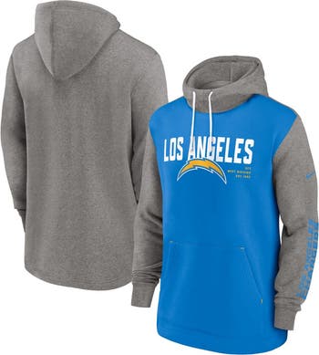 The Men's Nike Powder Blue Los Angeles Chargers Fashion Color Block Pullover Hoodie is the perfect way to show your support for the Los Angeles Chargers. Made from a comfortable cotton and polyester blend, this midweight hoodie is suitable for moderate temperatures. Screen-printed graphics proudly display your Los Angeles Chargers pride, making it the perfect way to represent your team on game day or any day.