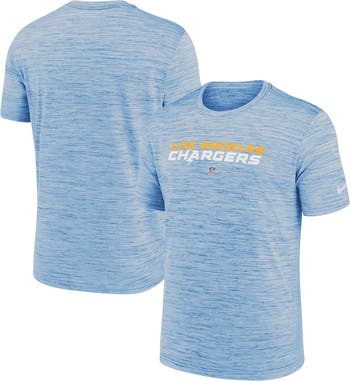 The Men's Nike Powder Blue Los Angeles Chargers Velocity Performance T-shirt is the ultimate way to show your unwavering support for the Los Angeles Chargers. Crafted from breathable polyester, this t-shirt boasts Dri-FIT technology, ensuring you stay cool and comfortable throughout the game. The space dye fabric and heat-sealed graphics add a touch of style, while the classic crew neck and short sleeves provide effortless wearability. Whether you're cheering from the stands or relaxing at home, this t-shirt is a must-have for any dedicated Los Angeles Chargers fan.