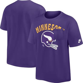 Nike bring together modern style and vintage Minnesota Vikings details with this Rewind Heavy Max90 Pocket T-Shirt. Its loose fit and dropped shoulder seams provide plenty of room for movement, ensuring you stay comfortable on game day or casual outings. The stiff drape and structured shape give this Minnesota Vikings shirt a premium look and feel.