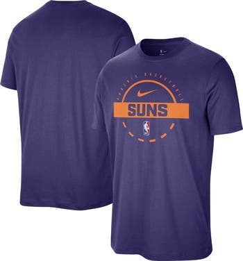 Elevate your training regimen with this Phoenix Suns Authentic Practice T-Shirt from Nike. The rib-knit collar and tagless design will keep you comfortable whether you're hitting the court or relaxing at home. The printed team graphics, NBA Shield, and Nike Swoosh on the front display your Phoenix Suns Nike pride in style.