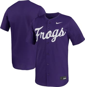Look ready to play ball for your favorite college in this TCU Horned Frogs Limited Baseball Jersey from Nike. Its authentic design features premium team details and double-knit mesh fabric that delivers a cool, breathable feel. A rounded droptail hem gives this TCU Horned Frogs jersey a more comfortable fit.