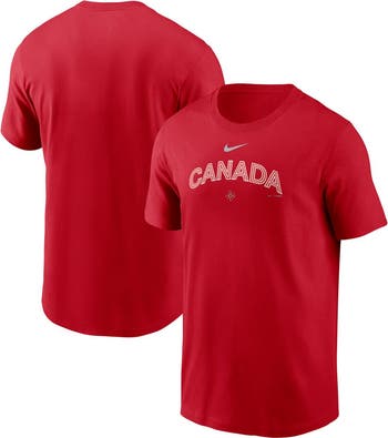 Celebrate the future of baseball with this Nike 2026 World Baseball Classic Wordmark T-Shirt, a vibrant piece commemorating the upcoming showcase of the league's best. The World Baseball Classic represents the pinnacle of baseball, and this Canada Baseball shirt lets you be part of the excitement. This standard-fit tee offers easy comfort, made from lightweight 155gsm jersey fabric. The screen-printed Canada Baseball graphics boldly display the best baseball tournament of the year, a symbol of world-class baseball. Show your passion for the game and look forward to the stars aligning with this essential piece of fan apparel.