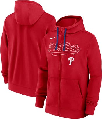 Embrace chilly days in modern Philadelphia Phillies style with this Knockout Script Full-Zip Hoodie by Nike. Soft fleece fabric creates cozy warmth, while an adjustable scuba hood provides customizable coverage. Front pockets keep your hands warm and essentials easily accessible in this Philadelphia Phillies hoodie.