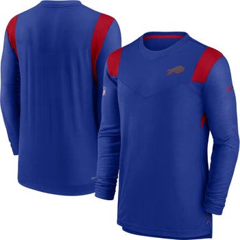 The Men's Nike Royal Buffalo Bills Sideline Tonal Logo Performance Player Long Sleeve T-shirt is the perfect way to show unwavering support for the Buffalo Bills. This performance-ready tee features Dri-FIT technology to keep you cool and comfortable, even during intense games. The heat-sealed applique with silicone details adds a stylish touch, while perforated chest and back panels provide breathability. Whether cheering from the stands or watching from home, this long sleeve t-shirt is a must-have for any true Buffalo Bills fan.
