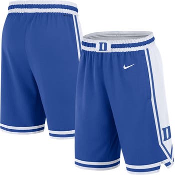 Hit the court in style with these Duke Blue Devils Road Replica Performance Basketball Shorts from Nike. The double-knit design adds structure and stability, while mesh fabric provides a lightweight, breathable feel to keep you cool and comfortable. Dri-FIT technology wicks away moisture, making these shorts perfect for intense workouts or cheering on your Duke Blue Devils.