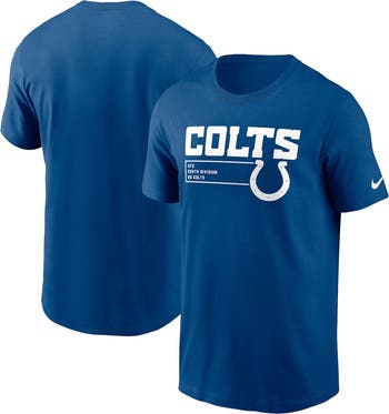 The Men's Nike Royal Indianapolis Colts Division Essential T-shirt is the perfect way to show unwavering support for the Indianapolis Colts. Made from soft cotton, this crew neck tee features screen-printed graphics that proudly display the Colts logo. Whether cheering from the stands or hanging out with friends, this t-shirt is sure to make you feel like part of the team.