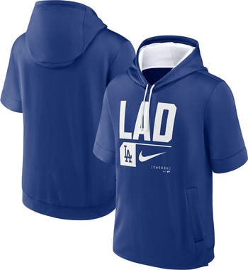 Maintain an ideal temperature in this Los Angeles Dodgers Tri Code Lockup hoodie. This short-sleeve design by Nike features a mesh-lined hood for breathable coverage and the added softness of French terry fabric. Front pockets keep hands warm and small items easily accessible in this Los Angeles Dodgers pullover.