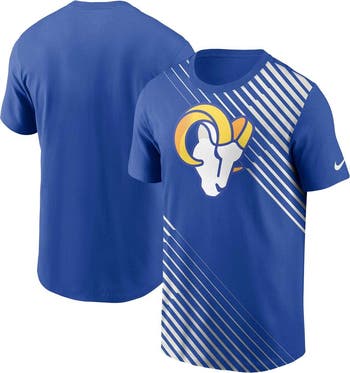 The Men's Nike Royal Los Angeles Rams Yard Line Fashion Asbury T-shirt is the perfect way to show your support for the Rams. With its crew neck, screen print graphics, and rounded hem, this T-shirt is both comfortable and stylish. Made from cotton, this T-shirt is sure to keep you cool and comfortable all game long. Whether you're cheering on the Rams from the stands or watching the game at home, this T-shirt is a must-have for any Los Angeles Rams fan.