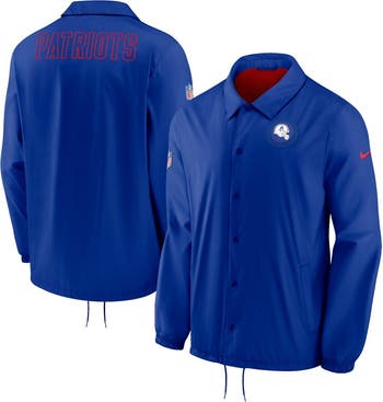 Similar to the official team gear, this Nike Coaches full-snap jacket instantly upgrades your New England Patriots apparel. It features Nike Repel to protect you against rain showers and convenient side slip pockets. Plus, the authentic New England Patriots design with signature colors and graphics makes your fandom stand out on game day.