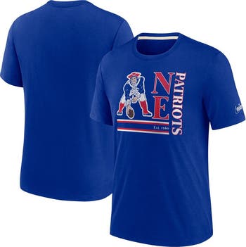 The Men's Nike Royal New England Patriots Wordmark Logo Tri-Blend T-shirt is the perfect way to show unwavering support for the New England Patriots. Made from a comfortable blend of polyester, cotton, and rayon, this tri-blend tee features distressed screen print graphics for a vintage look. The crew neck and relaxed fit make it ideal for casual occasions, while the bold New England Patriots logo on the chest proudly displays team spirit. Whether cheering at the stadium or relaxing at home, this tee is sure to become a favorite.