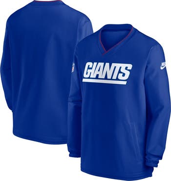 Show off your New York Giants pride in this 2024 Sideline Throwback Logo Long-Sleeve V-Neck Windshirt by Nike. It features a water-repellent exterior, a bungee cord hem and elastic cuffs that seal out the elements to keep you dry and warm. The soft interior provides added warmth, while an embroidered team logo patch on the front lets you comfortably represent the New York Giants in inclement weather.
