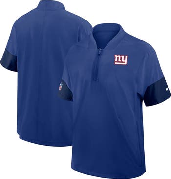 Stay dry and comfortable during weather changes in this New York Giants Sideline Short Sleeve Quarter-Zip Coach Jacket from Nike. It features a water-repellent exterior and lightweight taffeta fabric. Short sleeves offer breathability and freedom of movement, making this New York Giants jacket a versatile choice for game day or casual wear.