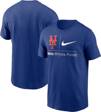 The Men's Nike Royal New York Mets Willets Point Hometown T-shirt is a must-have for any true New York Mets fan. With its classic crew neck and bold screen print graphics, this shirt proudly displays your unwavering support for the Mets. Made from soft cotton, it's comfortable enough to wear all day long, whether you're cheering from the stands or just showing your team spirit.
