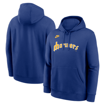 This Seattle Mariners Cooperstown Collection Wordmark Club Hoodie is crafted by Nike for vintage style and lasting comfort. It features a throwback team wordmark printed on midweight fleece fabric with a brushed lining for cozy warmth. An adjustable three-panel hood and pouch pocket add functional details to this essential Seattle Mariners hoodie.