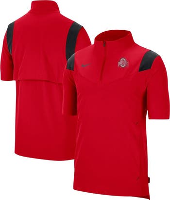 Wearing this Nike Coach quarter-zip pullover jacket makes you feel like you're on the Ohio State Buckeyes sidelines. Its light material and short sleeves ensure you'll be able to keep cool, even if the game comes down to the wire. This jacket's shoulder stripe design, Ohio State Buckeyes graphics and Nike swoosh combine for a sophisticated gridiron finish.