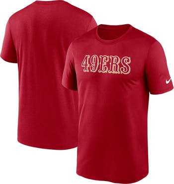 When you're on the move, stay cool and dry in this San Francisco 49ers Primetime Legend Wordmark Performance T-Shirt by Nike. It features sweat-wicking Dri-FIT technology and lightweight, breathable fabric. The San Francisco 49ers wordmark provides a versatile look for casual wear.
