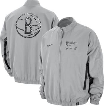 Guard against inclement weather in this Brooklyn Nets Courtside Vintage Warmup jacket. Made by Nike, it features a full-zip closure, elastic trim to block out the elements and zippered pockets for protecting essential items. Brooklyn Nets graphics on the front and back keep your fandom in easy view.