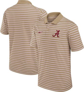 Stay cool and dry in this Alabama Crimson Tide Athletic Prep Striped Performance Polo by Nike. Its double pique fabric combines a lightweight feel with the sweat-wicking power of Dri-FIT technology for breathable comfort. A traditional stripe pattern complements the embroidered Alabama Crimson Tide patch, creating a timeless look.