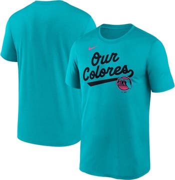 Men's Nike Teal Miami Marlins 2025 City Connect Team Phrase Script Legend Performance T-Shirt