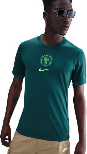 Wear your nation's colors wherever you are with this Replica Nigeria Women's National Team Jersey from Nike. Crafted with Dri-FIT technology, this 2025/26 Home jersey wicks away moisture, keeping you cool and comfortable whether you're on the pitch or cheering from the stands. The national crest proudly sewn on the left chest displays your unwavering support for your country, while the durable heat-sealed graphics ensure long-lasting vibrancy.