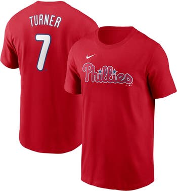 Men's Nike Trea Turner Red Philadelphia Phillies Fuse Name & Number T-Shirt