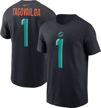 This Tua Tagovailoa 2025 Rivalries Collection Player Name & Number T-Shirt from Nike is a homage to the relentless swagger of an apex predator. A dark blue backdrop with unmistakable orange accents represents the squad fierce enough to hunt in deep waters. It's made from soft cotton fabric for a comfortable feel on Miami Dolphins game day.