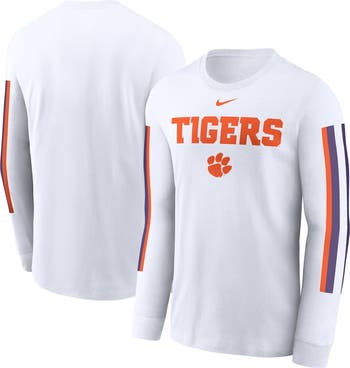 Showcase your Clemson Tigers pride with this Nike Local Spirit Slogan Long Sleeve T-Shirt. Soft cotton fabric provides continuous comfort, while the team script and logo printed at the center chest let everyone know who you cheer for. The pattern in team colors printed down both sleeves adds a bold and stylish touch. This shirt is a great way for any Clemson fan to show their Tiger pride on game day or any day.