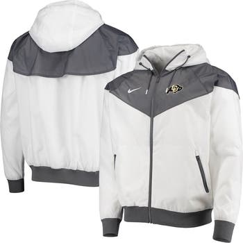 Stay comfortable in cooler weather by wearing this Colorado Buffaloes Windrunner full-zip jacket from Nike. It features raglan sleeves for more flexible movement, mesh lining that creates a breathable feel and ventilation through the back panel. Zippered pockets also keep items secure in this Colorado Buffaloes hoodie.