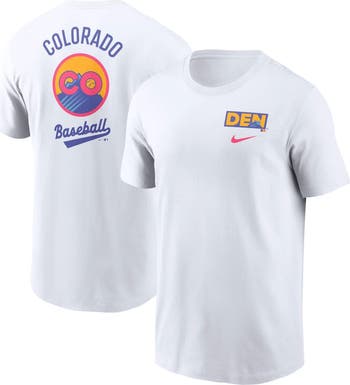 The Colorado Rockies welcome fans to "Colorful Colorado" with this 2025 City Connect Graphic T-Shirt from Nike. Inspired by the diverse landscapes and natural beauty of the Centennial State, this City Connect gear combines Colorado's colorful scenic views with the Colorado Rockies logo to create a truly unique and eye-catching design. From the Rocky Mountains to Coors Field, you'll be able to represent your favorite MLB team in style and comfort all season long.