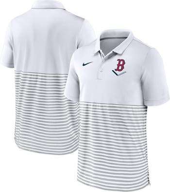 Step into the batter's box with the Men's Nike White/Gray Boston Red Sox Home Plate Striped Polo. This stylish polo proudly displays the iconic Boston Red Sox logo, connecting you to the heart of the MLB. Its breathable polyester fabric keeps you comfortable while you cheer on your team, and the side splits at the hem provide a relaxed fit. Whether you're at Fenway Park or watching from home, this polo is the perfect way to show your unwavering support for the Boston Red Sox.