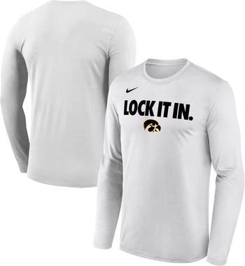 Dribble past the competition in this Iowa Hawkeyes On-Court Bench Long Sleeve T-Shirt from Nike. Matching what the players on the bench will wear during the 2026 NCAA Basketball season, this tee features a "Lock It In" wordmark across the chest with the Iowa Hawkeyes logo underneath. With Dri-FIT technology to wick away sweat and a lightweight, breathable build, you'll be able to hit the gym or enjoy even the most intense matches while staying cool and comfortable.
