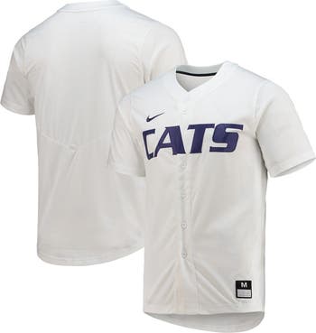 Make a statement about your Kansas State Wildcats fandom with this Full-Button Replica baseball jersey from Nike. It features Dri-FIT technology that wicks away moisture to keep you cool and dry, making it perfect for those hot, sunny games. A stitched Kansas State Wildcats applique on the front lets everyone know where your allegiance lies.