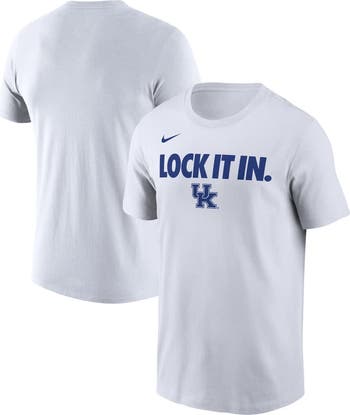 Dribble past the competition in this Kentucky Wildcats On-Court Bench T-Shirt from Nike. Matching what the players on the bench will wear during the 2026 NCAA Basketball season, this tee features a "Lock It In" wordmark across the chest with the Kentucky Wildcats logo underneath. With Dri-FIT technology to wick away sweat and a lightweight, breathable build, you'll be able to hit the gym or enjoy even the most intense matches while staying cool and comfortable.