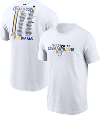Celebrate the Los Angeles Rams' triumphant 2021 NFC Championship victory with the Men's Nike White Los Angeles Rams 2021 NFC Champions Roster T-Shirt. This commemorative tee proudly displays the names of the Rams' championship roster, honoring their remarkable achievement. Crafted from soft cotton, this t-shirt offers unparalleled comfort and breathability, making it the perfect choice for game days or everyday wear. Show your unwavering support for the Los Angeles Rams and commemorate their historic triumph with this exclusive t-shirt.